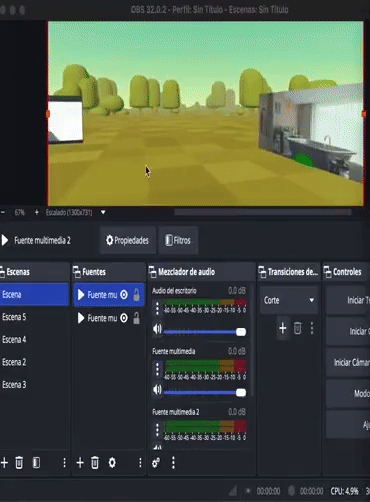 La integración con OBS es opcional y solamente se requiere si deseas retransmitir la escena o utilizarla como fuente de vídeo en directo.